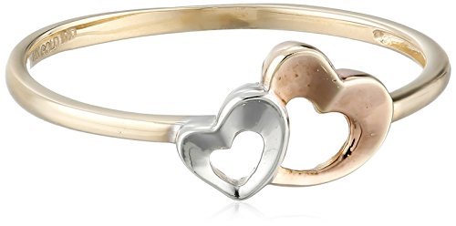 14k Gold Tri-Color Double Heart Ladies Ring, Size 7