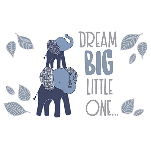 -. Binding : Baby Product -. Brand : Lambs & Ivy -. Color : Gray/Blue -. Department : baby-boys -. EAN : 0084122676480 -. Feature : These easy on easy off wall appliques are a great way to complete your designer nursery. / Four sheets are included featuring our sweet elephants as well as an inspirational message. Each sheet is 13" x 24". / Made in the USA. Wipe clean, easy peel and stick. -. Label : Lambs & Ivy -. Manufacturer : Lambs & Ivy -. Model : 676048 -. MPN : 676048 -. NumberOfItems : 1 -. PackageQuantity : 1 -. PartNumber : 676048 -. ProductGroup : Baby Product -. ProductTypeName : BABY_PRODUCT -. Publisher : Lambs & Ivy -. ReleaseDate : 2017-01-20 -. Studio : Lambs & Ivy -. Title : Lambs & Ivy Indigo Dream Big Little One Elephant Wall Appliques, Gray/Blue -. UPC : 084122676480