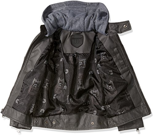 Urban Republic Toddler Boys' Faux Leather Jacket With Fleece Lined Hood, Dark Charcoal, 2T