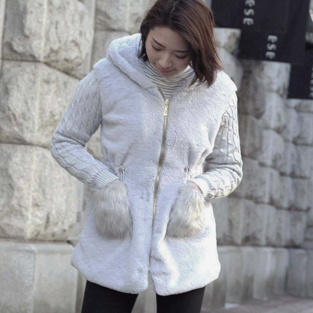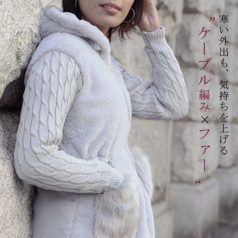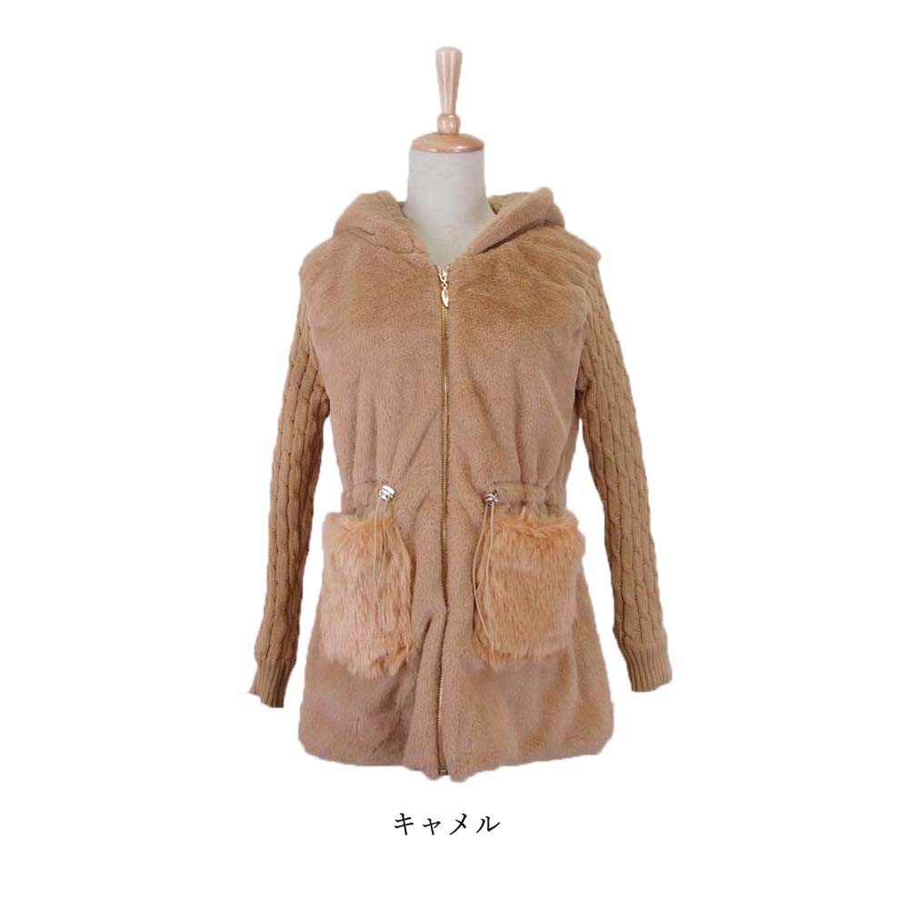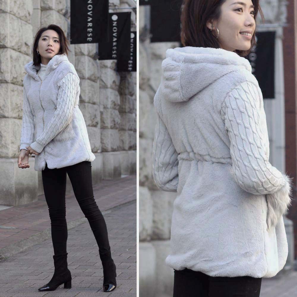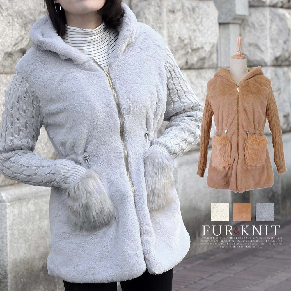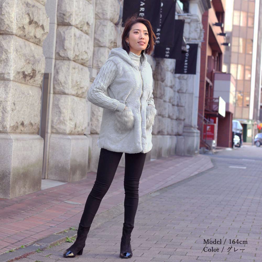 ニットとの異素材切り替えがメリハリのあるレディースムートンコート