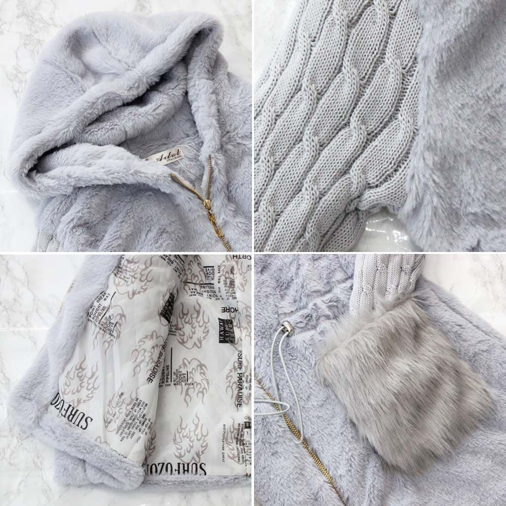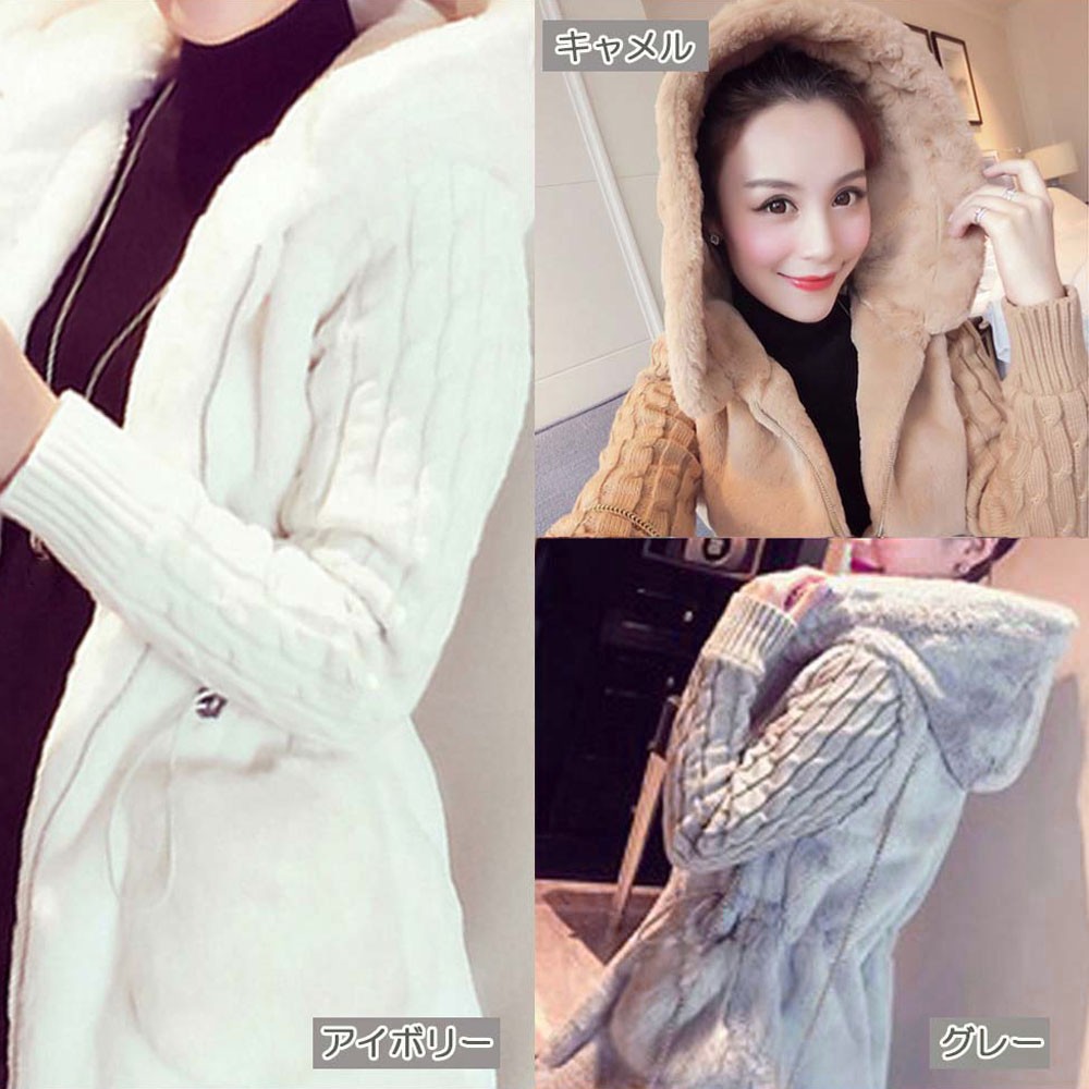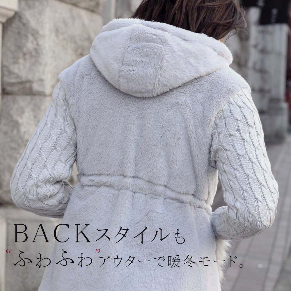 ボリューム感のあるフードで小顔効果も期待でき、さらにウエストが紐で調整可能なのでカジュアルにスタイリングの幅が広がる