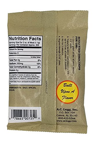 - One 8oz bag correctly seasons 25lbs of meat.