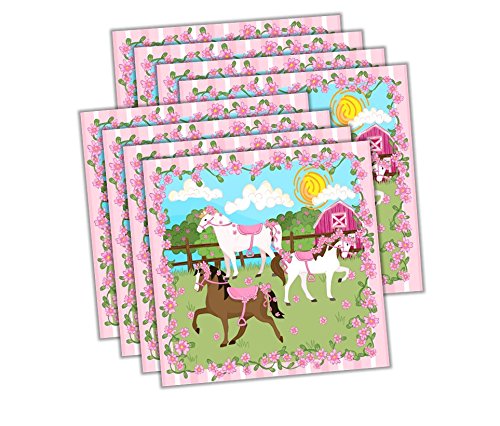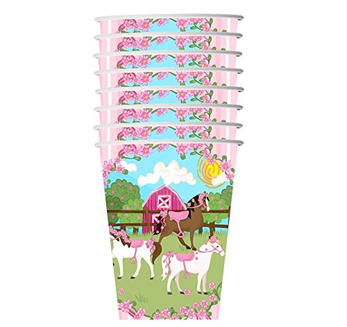 -. Title : Lovely Pink Horse Birthday Party Supplies Set Plates Napkins Cups Tableware Kit for 16