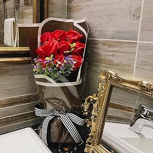 この薔薇は石鹸から作られており、枯れることがありません。 大切な人への愛を示すのにぴったりです。