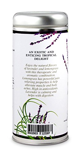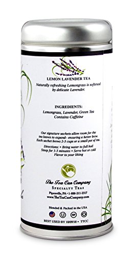 -. Binding : Misc. -. Brand : The Tea Can Company -. EAN : 0602003122187 -. Feature : 10 Premium Pyramid Tea Sachets / Brews 20-30 Cups (depending on strength) / Blended and Packed in the USA / Enjoy the natural flavors of lavender and lemongrass with this therapeutic and aromatic combination. / Gourmet, quality taste of loose leaf tea with the ease and convenience of a tea bag. -. IsAdultProduct : 0 -. Label : The Tea Can Company -. Manufacturer : The Tea Can Company -. NumberOfItems : 1 -. PackageQuantity : 1 -. ProductGroup : Grocery -. ProductTypeName : GROCERY -. Publisher : The Tea Can Company -. Studio : The Tea Can Company -. Title : Lemon Lavender Tea -. UPC : 602003122187