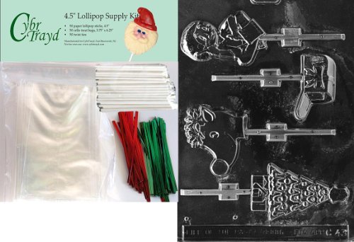 ASSORTMENT WITH DRUMMER Christmas Chocolate Mold w/Lollipop Supply Kit (50 Lollipop Sticks, 50 Cello Bags, 25 Red & 25 Green Twist Ties, Molding Instructions)