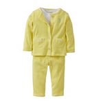 -. Feature : 3-piece set includes: cardigan, bodysuit & pants (cotton) / Cardigan: long sleeves, button front, 2-pocket / Bodysuit: expandable neckline, short sleeves, inseam snaps / Pants: elastic waistband / Seahorse applique