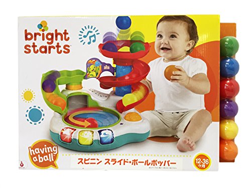 -. Binding : Baby Product -. Brand : Bright Starts -. Color : Multi-color -. Department : baby-boys -. EAN : 0074451091764 -. Feature : 3 ways to play - Classic ball drop, ball popper and ball spinner / Bop the beach ball to start the fun and watch as balls spin around the pool to fun music and sounds, and magically "POP" out the top for a silly surP.R.Ise / The fun starts all over when the balls roll down the spiral slide into the spinning pool / Play Mode features lights, tropical melodies, and silly sounds / Learn Mode includes 3 light-up buttons that teach animals and colors -. IsAdultProduct : 0 -. Label : Bright Starts -. Manufacturer : Bright Starts -. Model : 9176-6 -. MPN : 9176-6 -. PackageQuantity : 1 -. PartNumber : 9176-6 -. ProductGroup : Baby Product -. ProductTypeName : BABY_PRODUCT -. Publisher : Bright Starts -. ReleaseDate : 2015-06-01 -. Studio : Bright Starts -. Title : Bright Starts Spin 'N Slide Ball Popper Toy -. UPC : 074451091764
