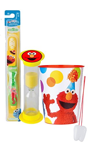 -. Feature : Elmo and his friends have arrived, all the way from Sesame Street, to help little ones brush their best! / (1) Elmo Kid's Crest Sesame Street Soft Manual Toothbrush! Ages 2+ / (1) Sesame Street 16oz Plastic Mouthwash Rinse Cup. Doubles as Toothbrush Holder! / (1) Dentist Recommended Sesame Street Elmo 2 Minute Brushing Timer (Assorted Characters) Visual Aid To Encourage Dentist Recommended Brushing Time! / Plus Bonus "Remember to Brush" Visual Aid Tooth Saver Necklace. Hang it in their bathroom or by their bed so they remember to keep their chompers sparkly fresh. You could also use these tooth charms to save one of your child's baby teeth.