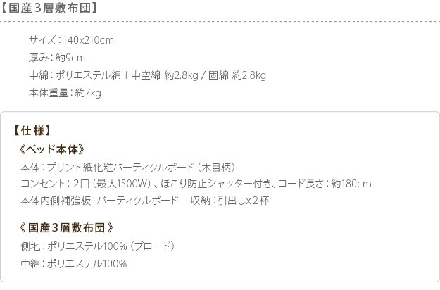 ●ロースタイル 省スペース スリムヘッドボード 収納 引き出し コンセント 敷布団 敷きふとん 抗菌防臭布団 防ダニ布団 防ダニ加工 吸汗速乾 軽量 軽い 厚い