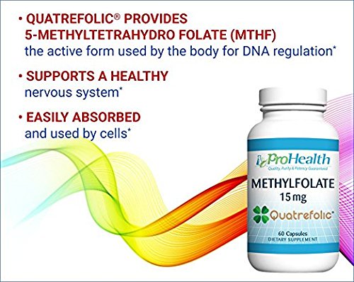 ProHealth's Methylfolate with Quatrefolic supports a variety of bodily functions including healthy mood, memory, circulation and well-being.* Folic acid and also food folate are not biologically active and need to be converted to the metabolically active 5-methyltetrahydrofolate (5-MTHF) through a multi-steps process where the enzyme methylenetetrahydrofolate reductase (MTHFR) owns a key role. Quatrefolic® provides 5-methyltetrahydrofolate (MTHF), the active form used by the body for DNA regulation and other fundamental metabolic processes. While maintaining the same biological properties of 5-MTHF, Quatrefolic® has been able to increase stability, bioavailability and solubility over other previous folate generations. *These statements have not been evaluated by the Food and Drug Administration. This product is not intended to diagnose, treat, cure or prevent any disease. Individual results may vary.Feature