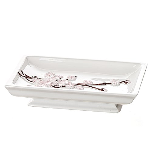 BEAUTIFY YOUR SPACE: Decorative Soap Dish Features a Mix of Enchanting Glossy White and Ornate Textured Floral Detailing to Spruce Up Your Bathroom.
