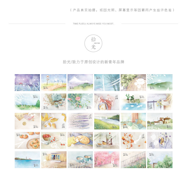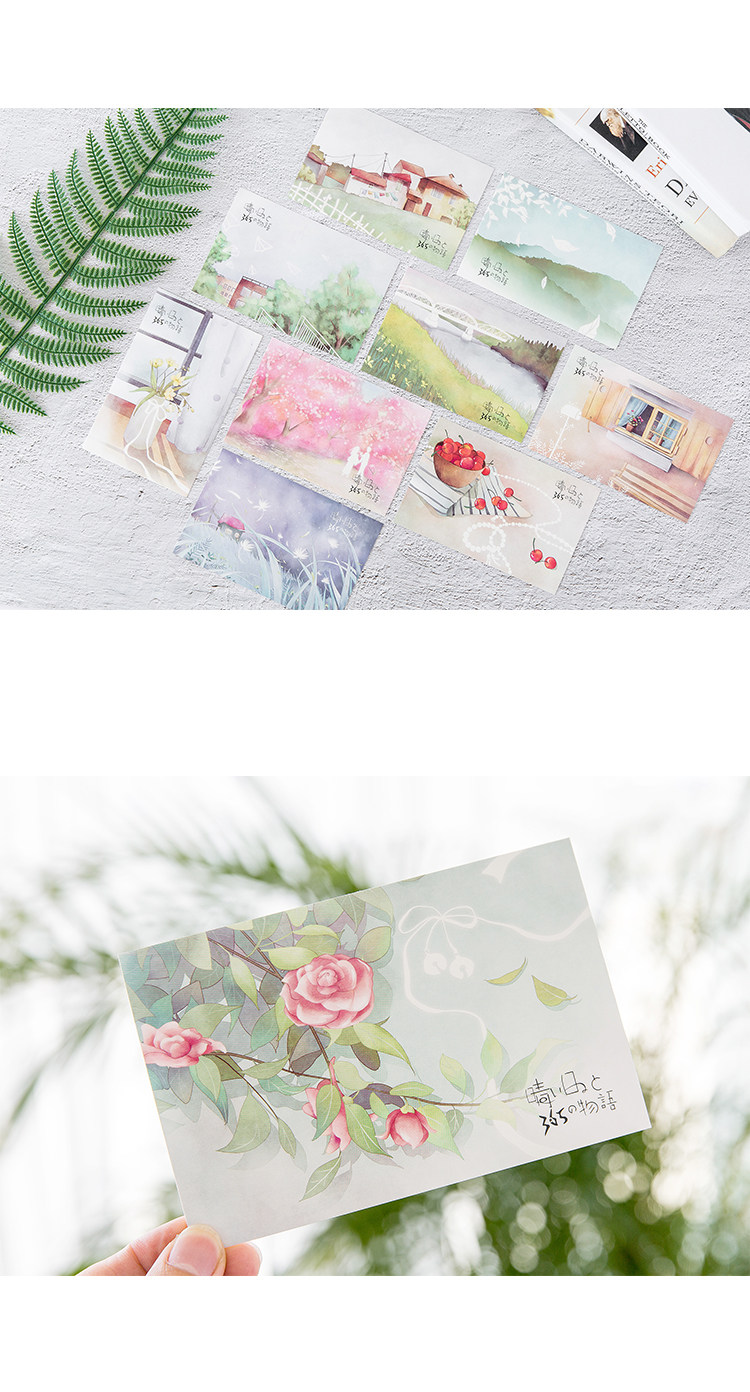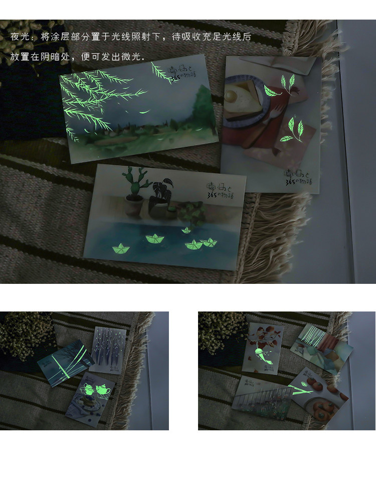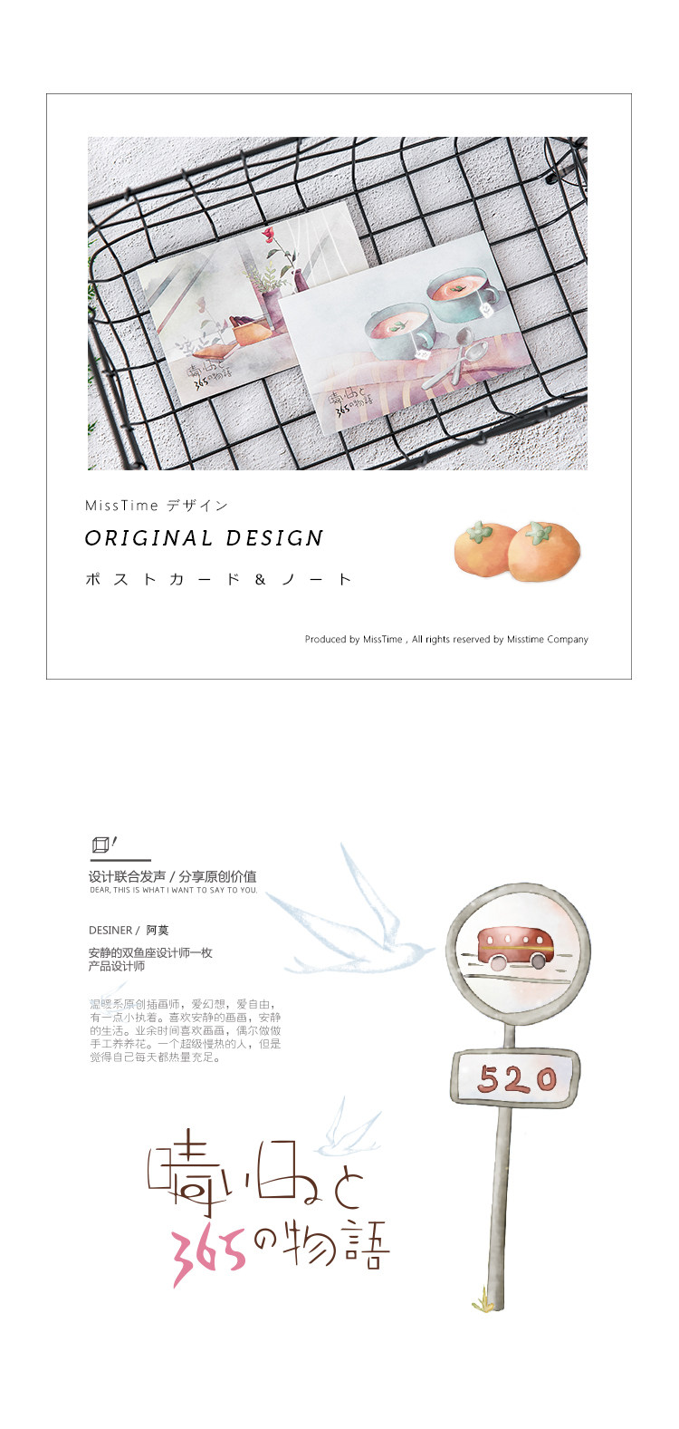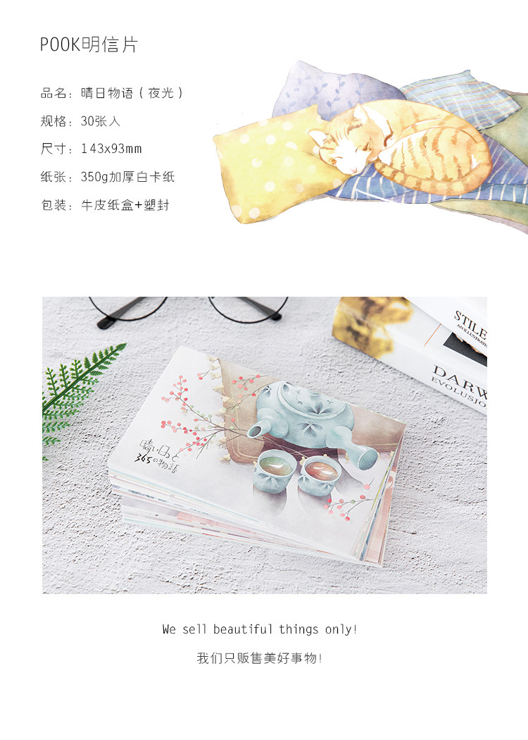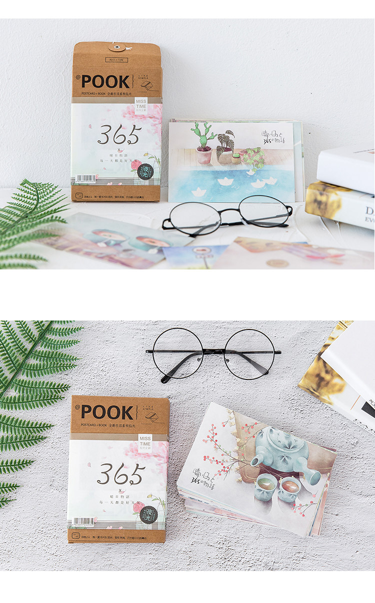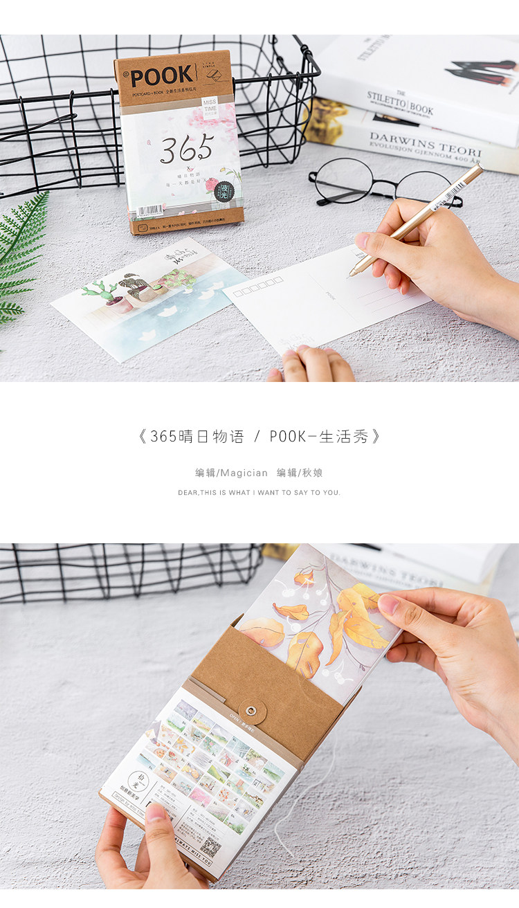 创意精致盒装明信片365晴日物语治愈系插画手绘水彩卡片礼物