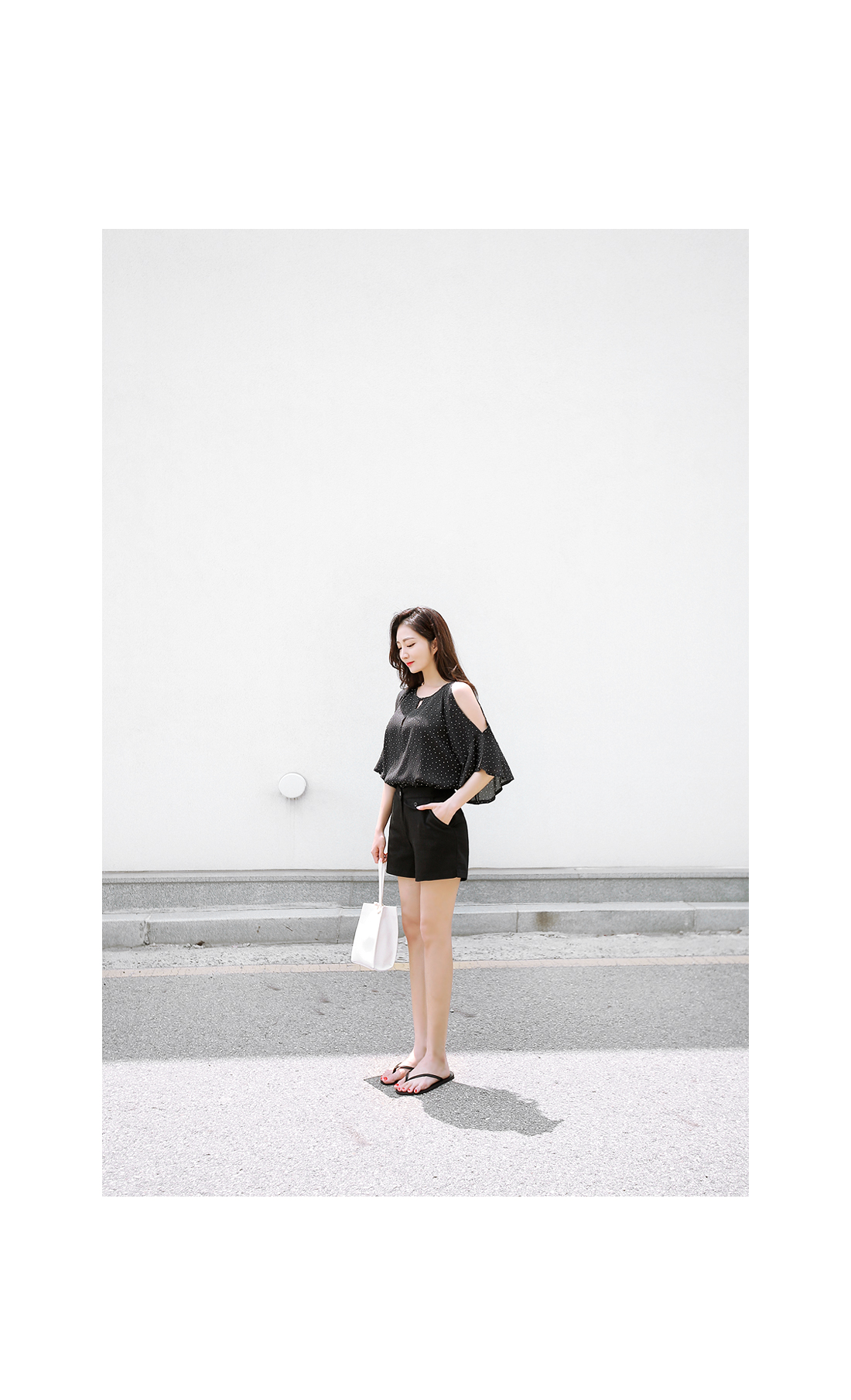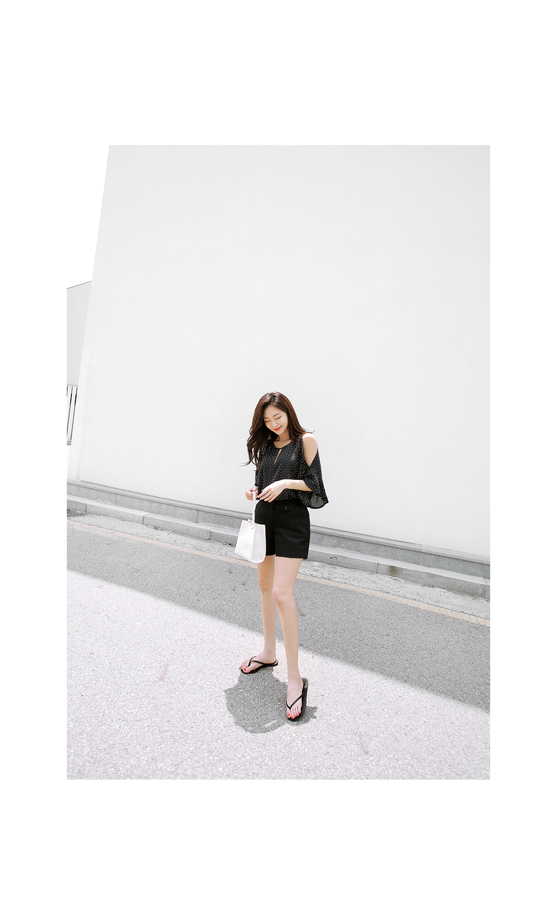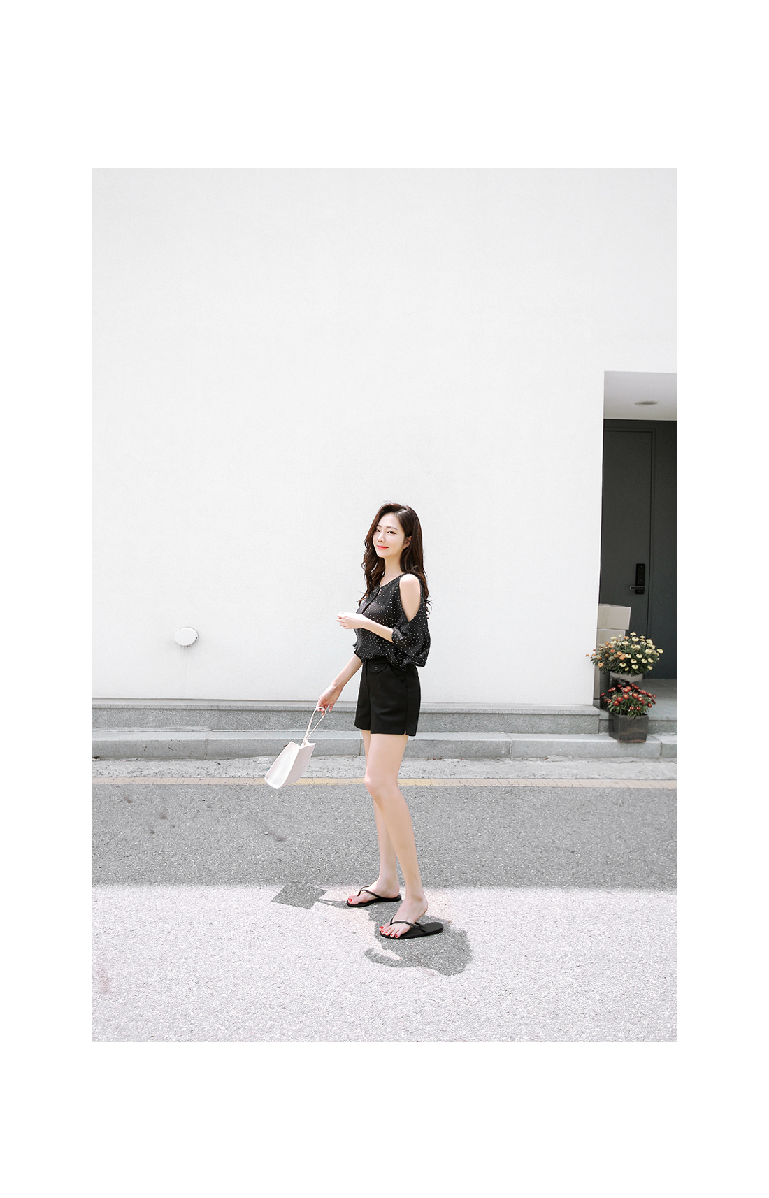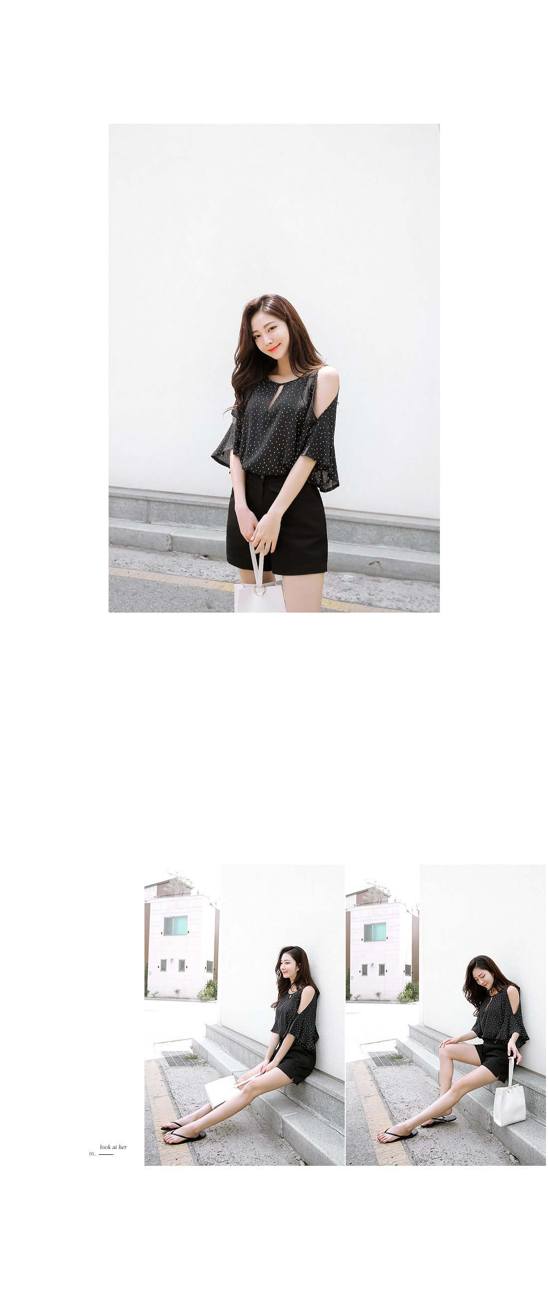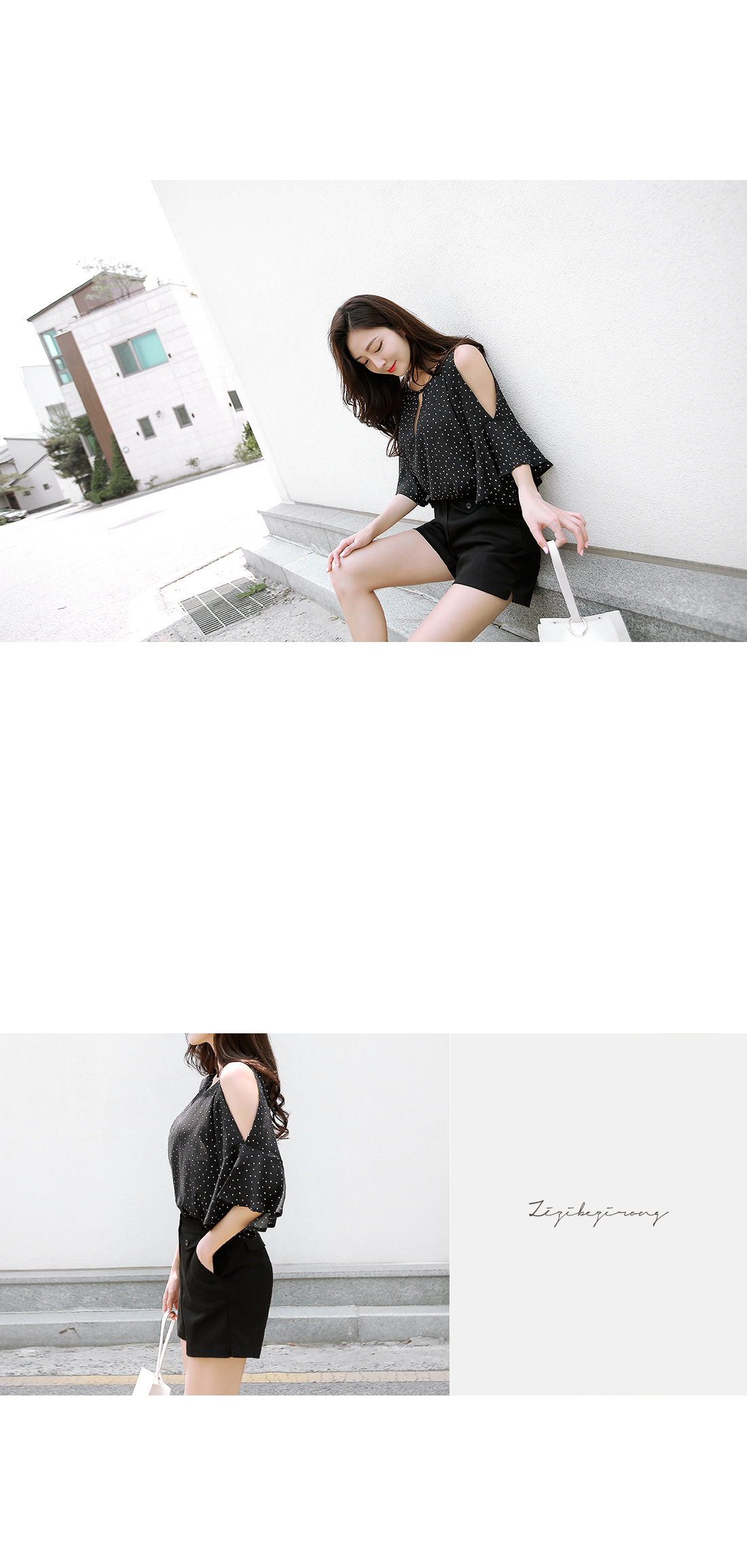 시원한 느낌의 트임 디테일이 돋보이는 블라우스에요.