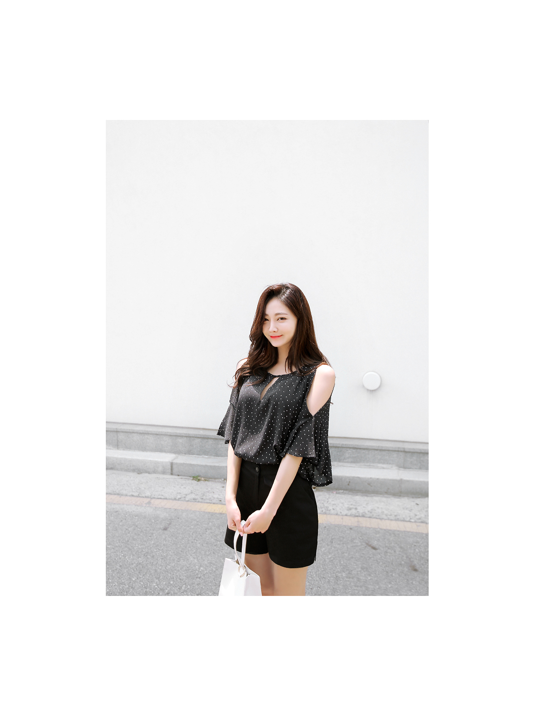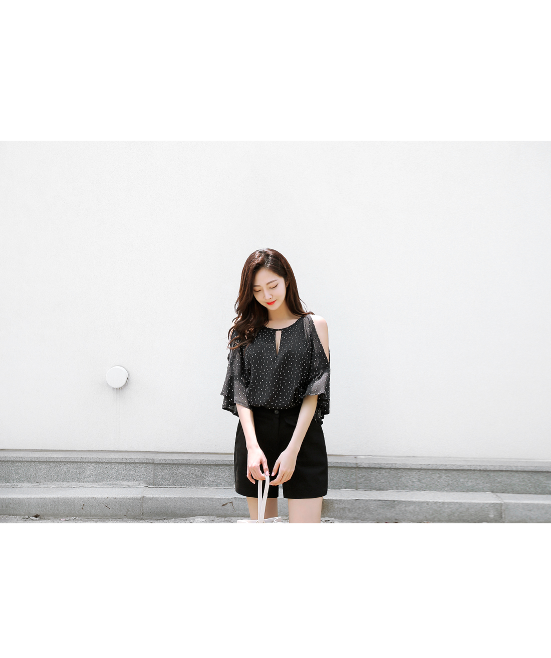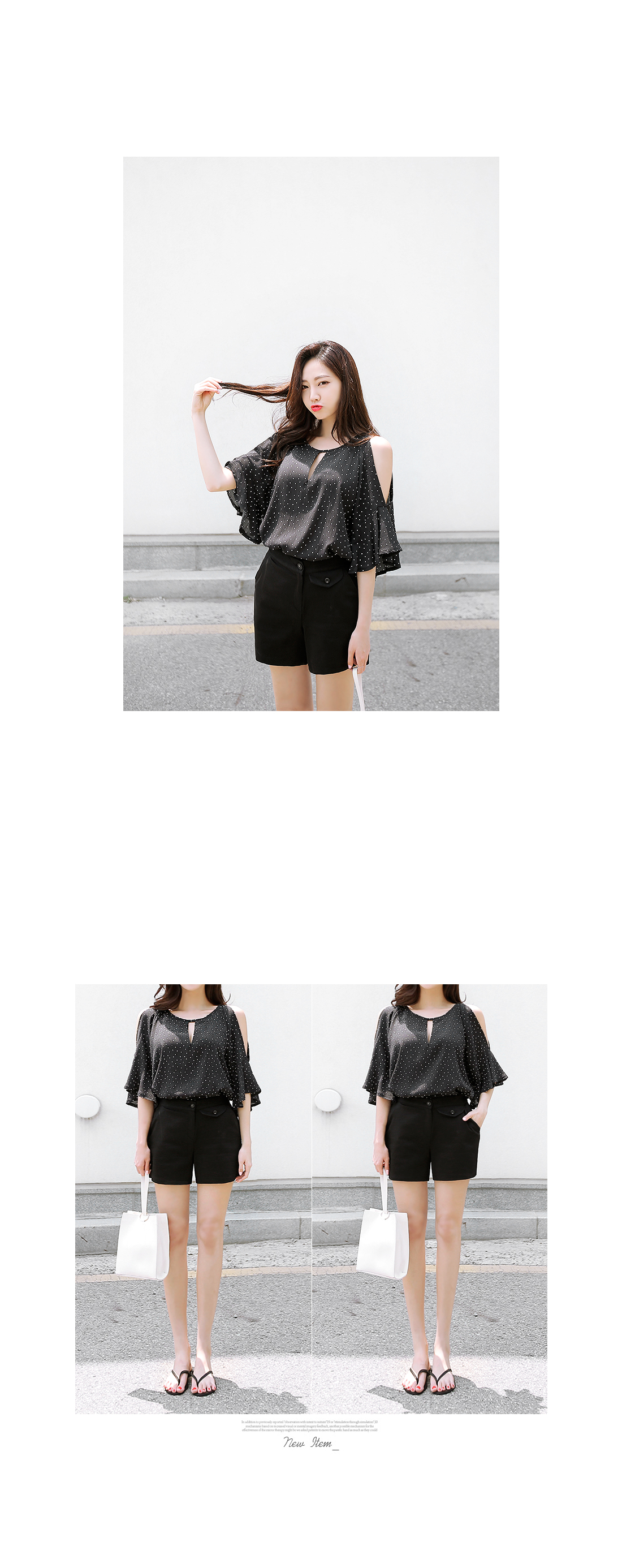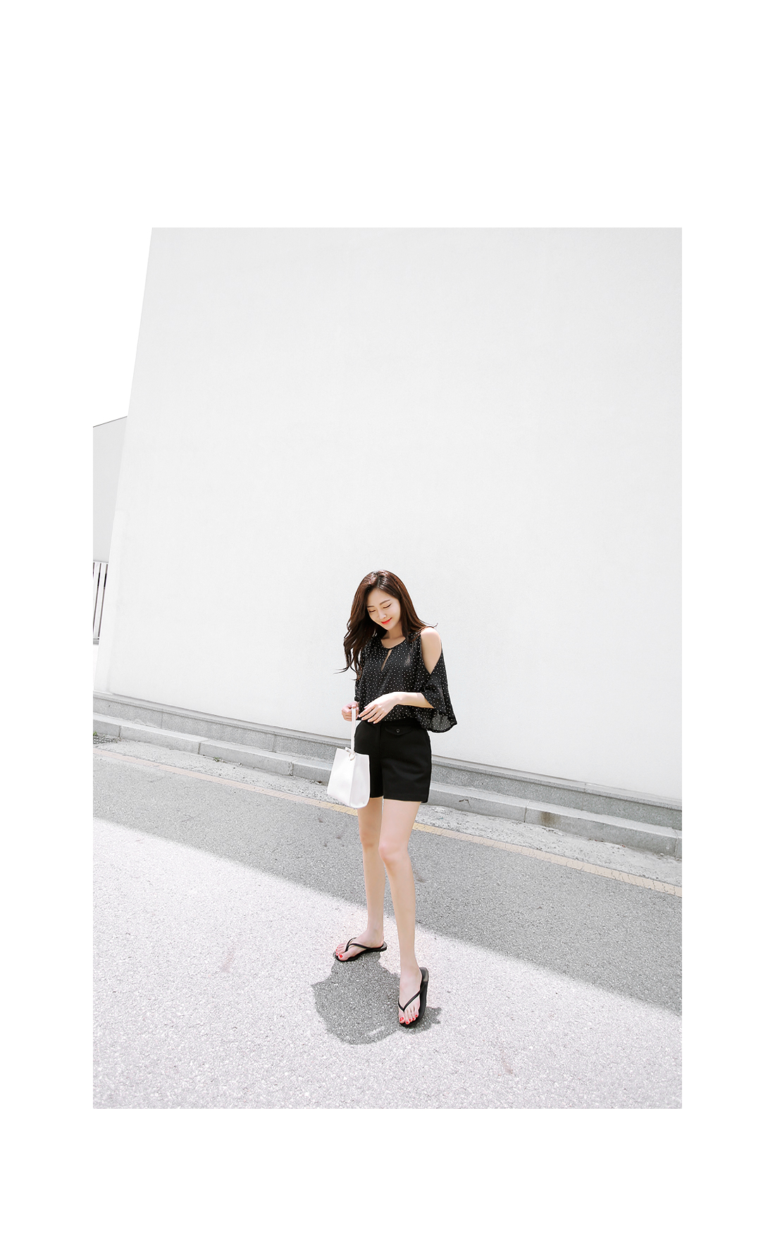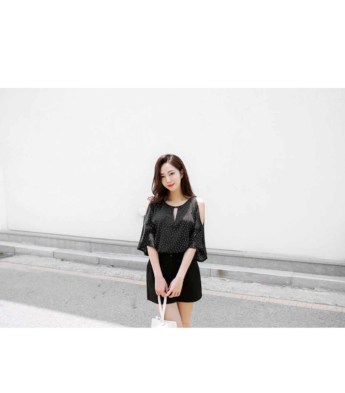 시원한 느낌의 트임 디테일이 돋보이는 블라우스에요.