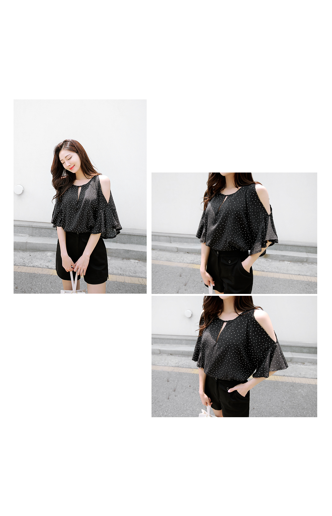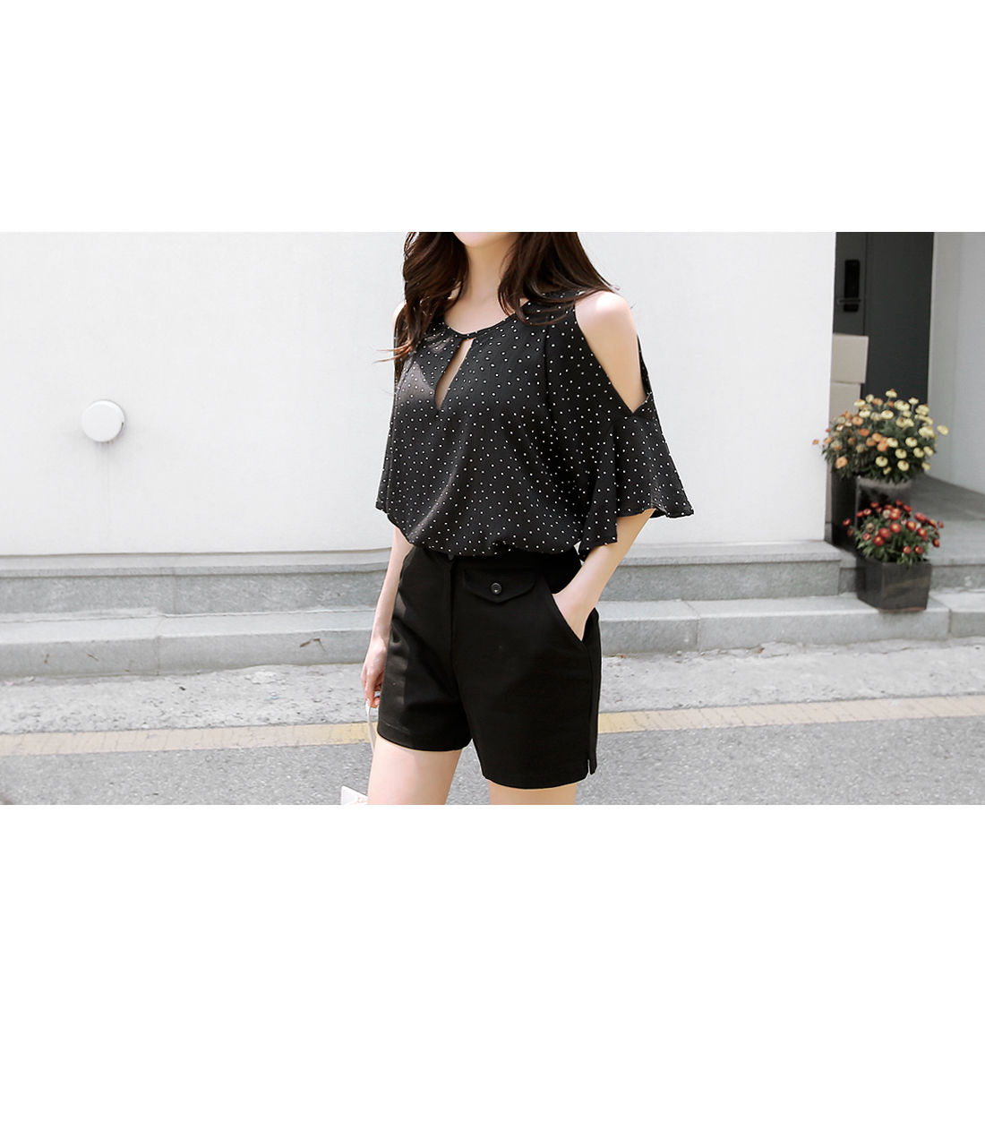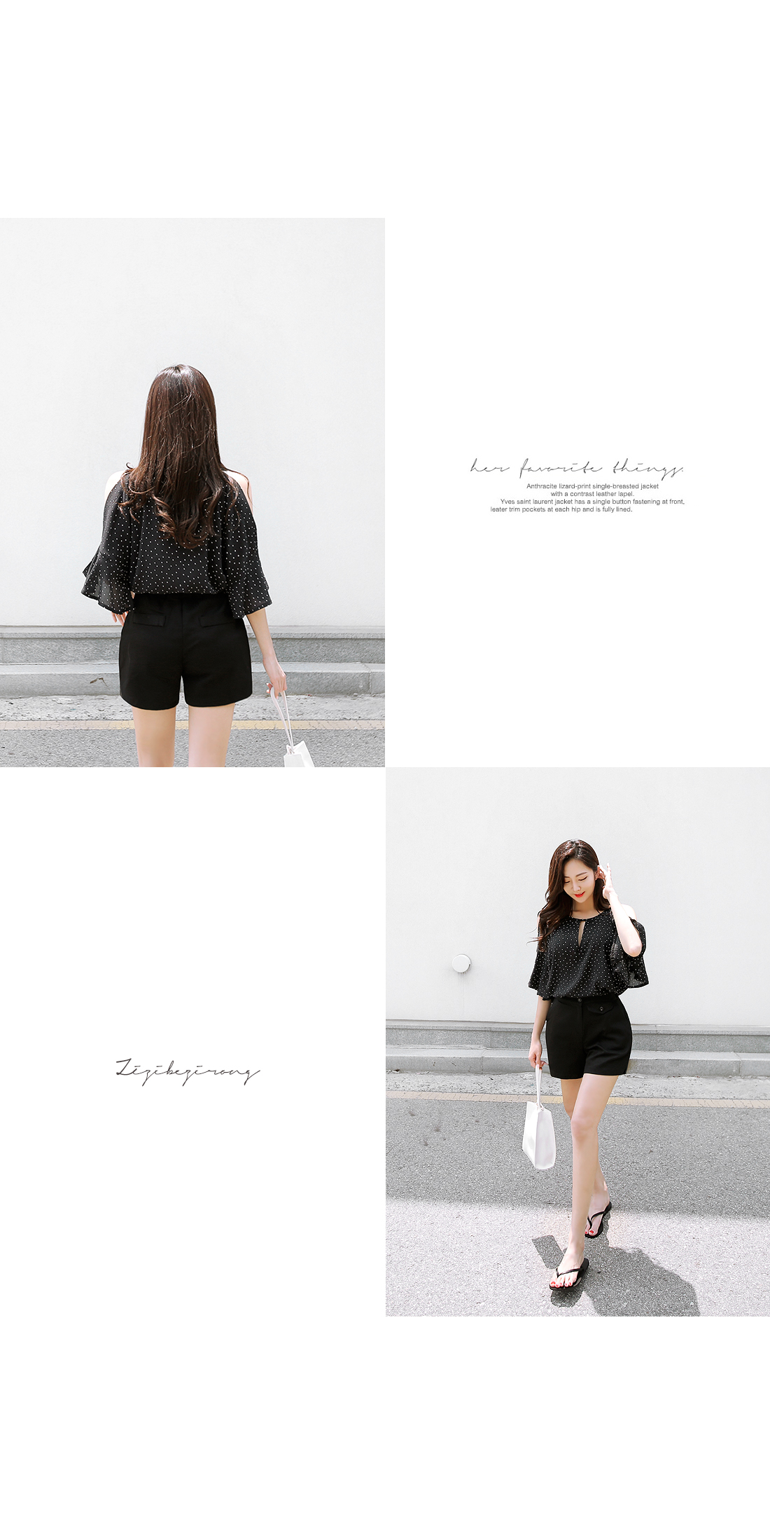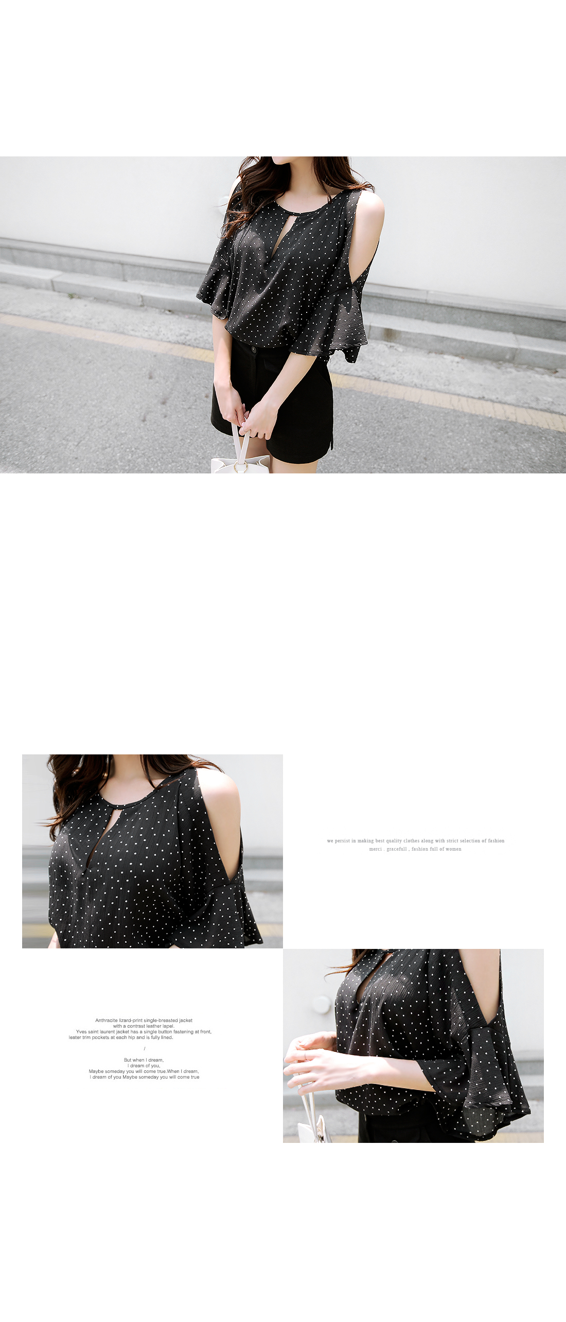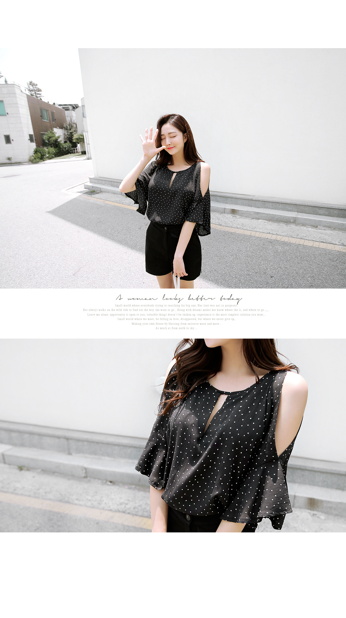 시원한 느낌의 트임 디테일이 돋보이는 블라우스에요.