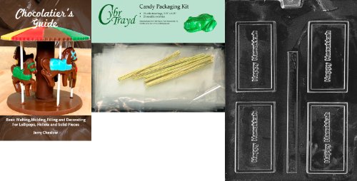 Cybrtrayd Happy Chanukah Business Card Chocolate Candy Mold with Chocolatier's Bundle, Includes 25 Cello Bags and 25 Gold Twist Ties