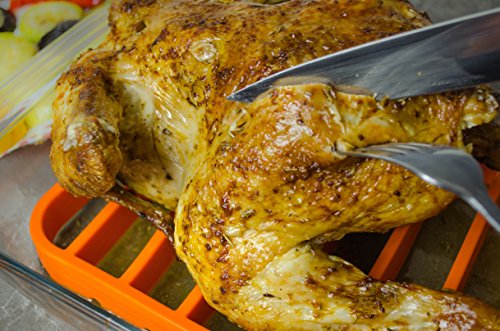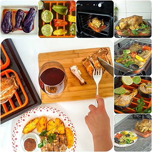 When was the last time when you felt that you need a roasting rack very easy to clean compared with a traditional one? Designed to make your cooking a lot easier. You don't know what you're missing until you have this great silicone roasting rack. This multifunctional gadget will give you an easy and amazing cooking experience. Is very useful in your kitchen if you want to prepare delicious and succulent meals in the oven, easy and healthy. Take your meat and vegetables to the next level of cooking and tasting, you don't have to worry about toxins leaching into the food. The grease and fat will drain into the tray but don't worry, the roasts it won't dry, they will keep moisture and flavor. 2 pieces perfectly fit in the oven baking tray. A better alternative to a traditional metal roasting rack, just step the rack into the dishwasher machine and it will look like new, effortless on your part. You can use it as a trivet, hot pad, cooling racks, baking meat. You will receive as a gift a soft silicone pastry brush for basting. We believe that every family needs this magic product. The products are packed in a reusable bag. If at any point in the next time the product will not perform perfectly please return it for a full refund or replacement. 0 |