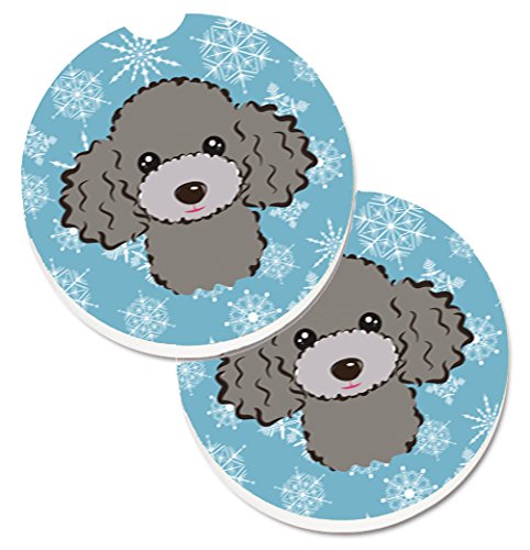 Caroline's Treasures Snowflake Silver Gray Poodle Set of 2 Cup Holder Car Coasters BB1693CARC, 2.56, Multicolor