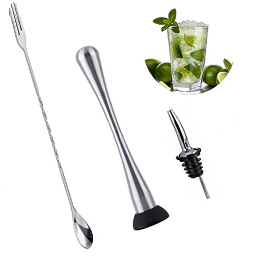 Product Information: SIZE: Muddler: 1.5" X 8.8" Mixing Spoon:12.5" Wine Pourers: 4" MATERIAL:Stainless steel high grade nylon