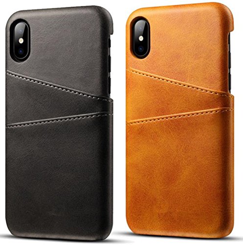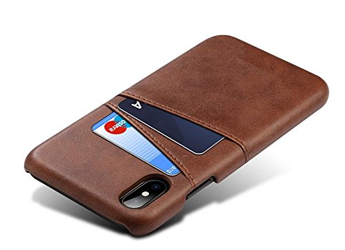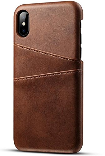 iPhone X Cow Leather Case,Superstart Luxury Classical Soft Comfortable Slim Credit Card Slot Back Full Body Leather Wallet Case for iPhone X 5.8 Inch--Brown