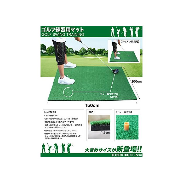 원본상품명: ゴルフ練習マット/ショット用スタンスマット(超特大)人工芝マット/打席【150cm×100cm】