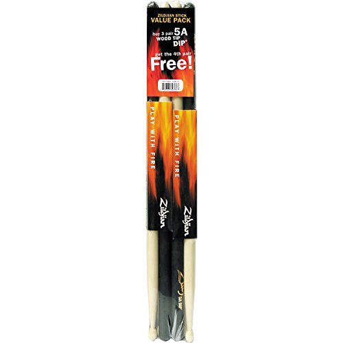 -. Title : Zildjian 5A Wood Dip 4 Pair-for-3 Drumstick Pack