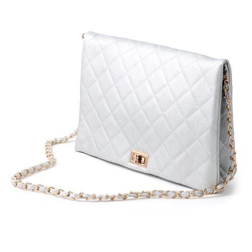 Product Description Stylish and classy clutch for any occasion. This quilted pattern clutch is so versatile. This popular clutch is always a best-seller! The classic design of this bag can be worn with any ensemble. The detachable braided chain shoulder strap perfectly accents the loveliness of the quilted pattern. Every woman should have this classic bag in their closet! 0