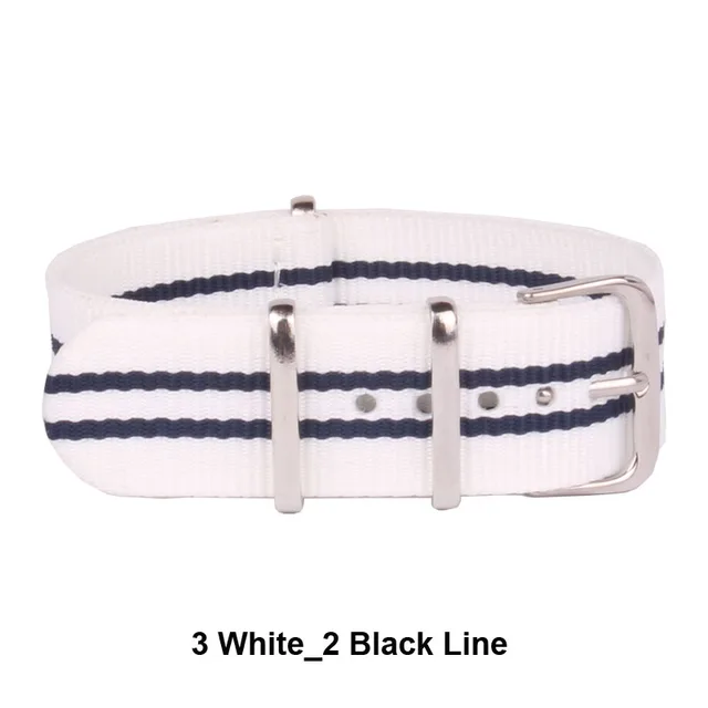 상품 내용 소재:나일론 스트랩, 스테인레스 스틸 버클 밴드 폭:20 미리메터 밴드 길이:265 미리메터 걸쇠 유형:버클 봄 바:포함 색상:3White_2BlackLine 포장 상세