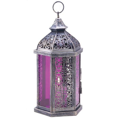-. Title : Purple Glass Candle Lantern - 11.5 inches