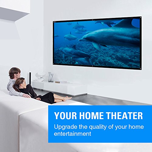 Houzetek projector screen is made of PVC material, it is a premium matte, high contrast white(gain 1.2) surface which offers a brighter image and greater contrast with deeper black in environments with low ambient light! It will work well when paired with an HD projector. PVC material is very flexible and foldable which make it highly portable, offers great indoor viewing results as well!? The screen is an ideal choice for portable home indoor or outdoor theater HD movies, classroom training, business meeting, conference room presentations, exhibitions, outdoor public display. Features High Quality portable smooth PVC Material Viewing Surface, which exhibits excellent high definition resolution video display. With 160°viewing angle, 16:9 screen format and diagonal 100", offering large viewing area. Compact?and?travel-friendly?option?for?home?theater?movies,?small?meetings,?camping,?presentations?in conference,?public?display,?etc. Easy to install. Projector screen without frame and have metal holes, you can use nails, hooks, ropes or velcro to hang it. Equipped with a bag of hooks, which are convenient to hold the screen in your house. Technical Data Gain:?1.2 Aspect?Ratio:?16:9 Light?Transmittance:?85% Viewing?Angle:?160° Diagonal?Measurement:?100?inch Size:?221x124cm/87?x?49inches Using Instructions 1)Do not throw ink, do not use the knife and fork in the above scraping, to avoid fire and so on. 2)Customers can use cloth to wipe and clean the screen. 3)Since the PVC screen for front projection projector is collapsible, this brand new product may have some wrinkles on the surface, but no need to worry about it. Wrinkles will disappear naturally after hung it up on a wall for about 3 days. Besides, because of its excellent tensile properties, you can also remove the wrinkles in a second by pull the wrinkles with your hands slightly. 0 |
