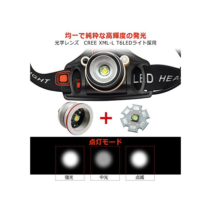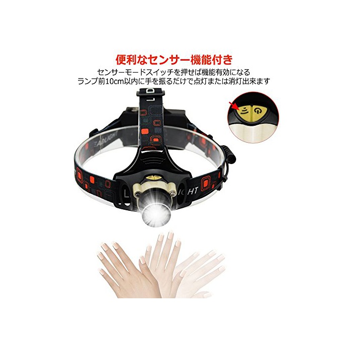 원본상품명: ヘッドランプ LED 充電式 ヘッドライト 高輝度 1200ルメン センサ ズム機能付 60°角度調節 登山 夜釣り 18650 / 3電池方 Taotuo