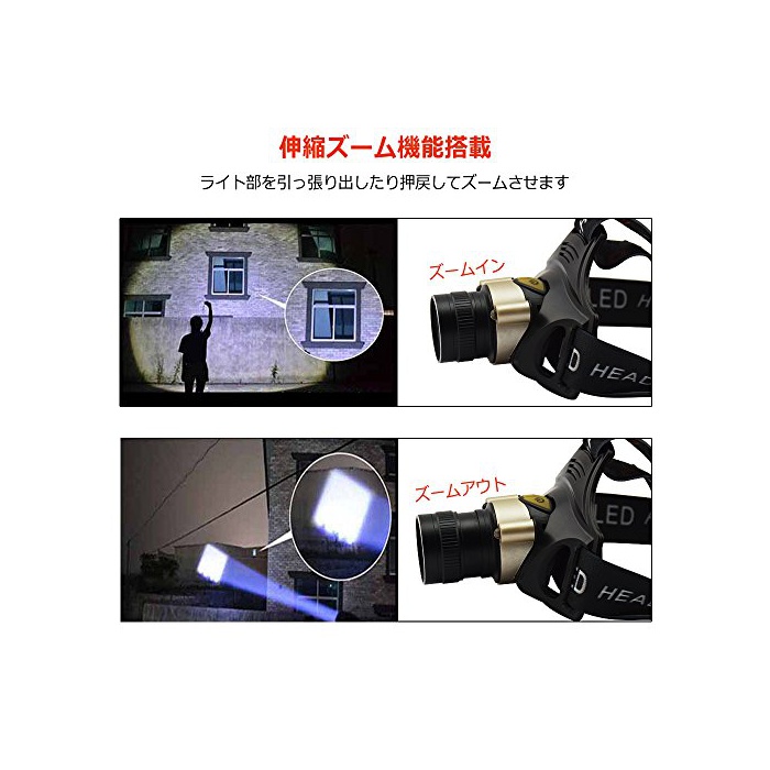 헤드 램프 LED 충전식 헤드라이트 고휘도 1200루멘 센서 줌 기능 첨부 60°각도 조절 등산 밤낚시 18650 / 단3전지 양방 대응 Taotuo