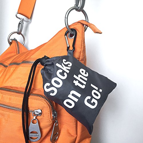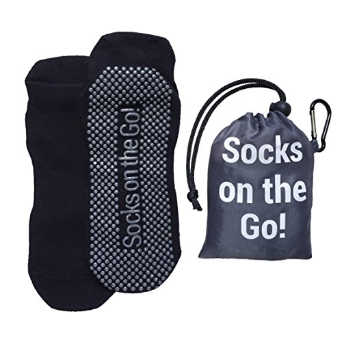 Socks On The Go in Carrying Bag with Non-Slip Silicone Grip for Yoga, Pilates, Airport Security, Hotel Rooms, Slippery Floors