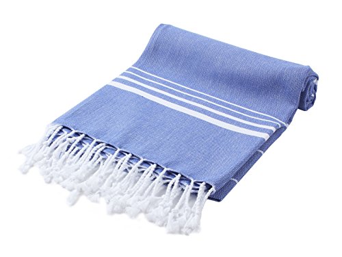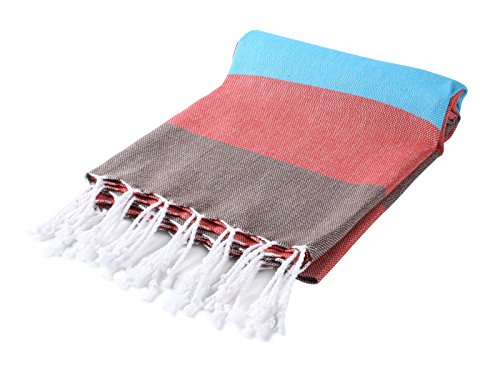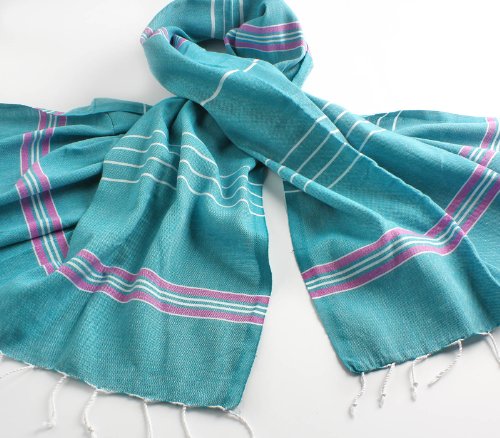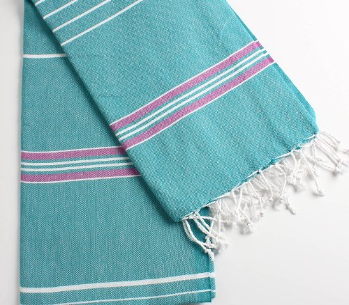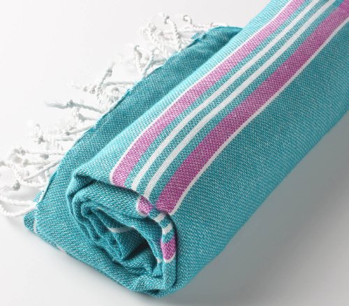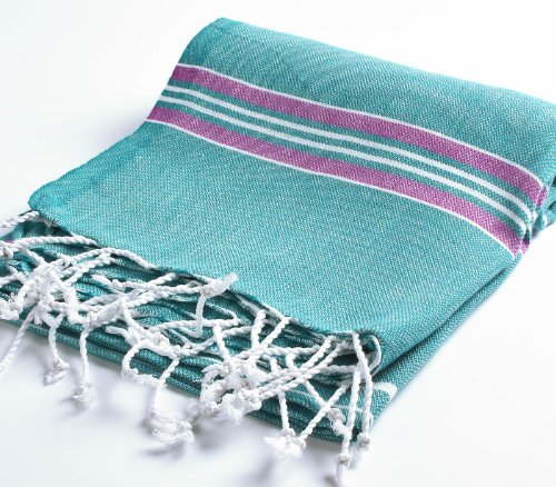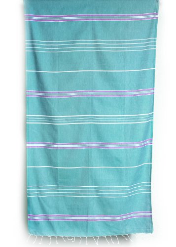 Cacala 100% Cotton Pestemal Turkish Striped Bath Towel, 37 x 70", Aqua/Purple