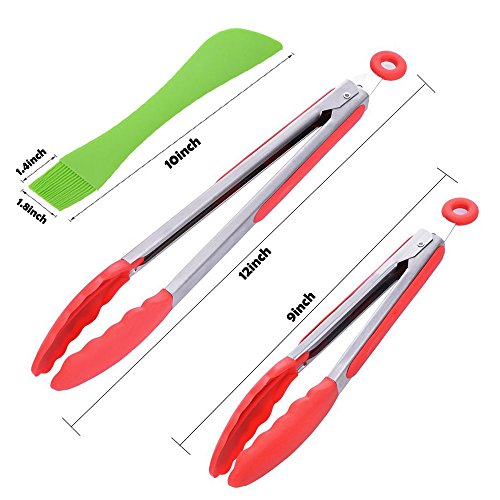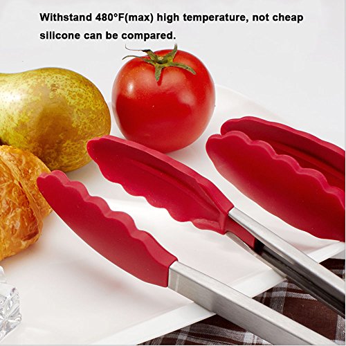 - TOP QUALITY MATERIAL,stainless steel and high-quality silicone get perfect combination,the high-quality silicone is heat-resistant up to 480°F so these tongs won’t melt, flake or warp like other cheap counterparts, safe to use on all cookware without scratching.