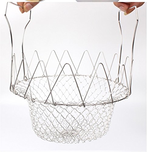 Stainless Steel Chef Basket Collapsible Multi-function Colander Cook Fried basket Kitchen Cooking Tool