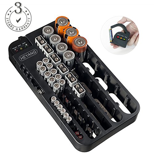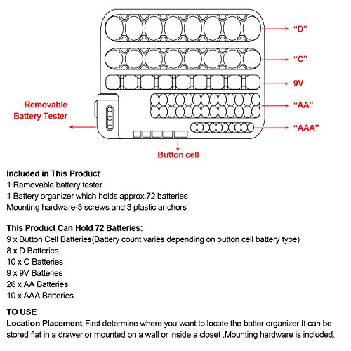 Battery Organizer Storage Rack with a Removable Battery Tester Holds 72 Batteries Various Sizes