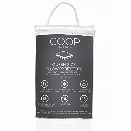 Coop Home Goods - Lulltra Hypoallergenic Zippered Pillow Protector Covers - 2 pack - Bamboo Derived Rayon Cover - Machine Washable - 15 Year Warranty (Queen)