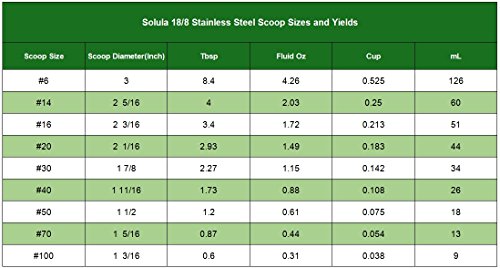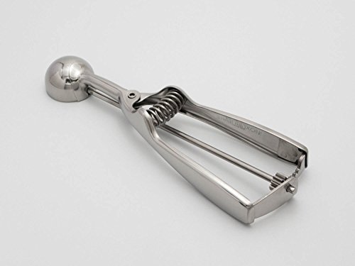 Capacity: 4 tablespoon (60 ml / 0.25 cup) Bowl diameter: 2 5/16 inches ( 59 mm / 5.9 cm) Material: 18/8 Stainless steel Package contents: 1 scoop. Weight :4.25 oz (122g) Production Process: Mirror Polished Ideal for use at home, in a restaurant, in a party or an ice cream shop.You can easily create beautiful balls of ice cream, melon, sorbet, fruit, cookies and many more healthy meals.