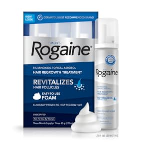 Three 2.11-ounce aerosols of hair regrowth foam, a 3-month supplyTop-selling product for hair regrowthGoes on easily and dries quicklyHelps regrow hairFor men with hereditary hair lossProduct DescriptionFor men suffering from hereditary hair loss, Men's ROGAINE Foam can help regrow hair. With 5% minoxidil, this is the first FDA-approved hair-regrowth treatment foam. It has been clinically proven to help hair regrowth in men who used it every day for four months*. Easy to use and unscented, Men’s ROGAINE foam absorbs quickly into the scalp, dries quickly, and has a texture that lets you feel exactly where you are applying it. This package of Men's ROGAINE Foam includes three 2.11-ounce aerosols, a three-month supply.