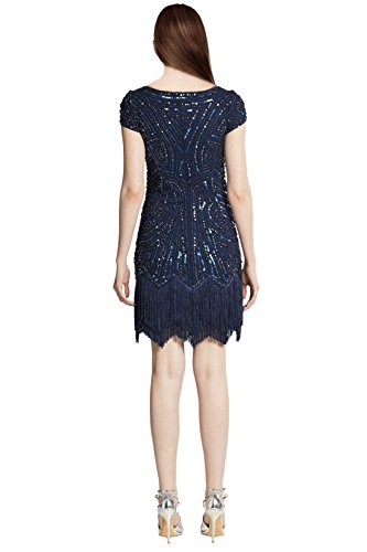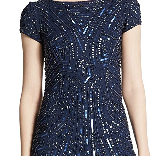Steal the spotlight in this beaded Aidan by Aidan Mattox dress. Sequined shift with a stringy hem. Boat neckline. Scalloped fringed hem. Concealed back zip closure with hook-and-eye.