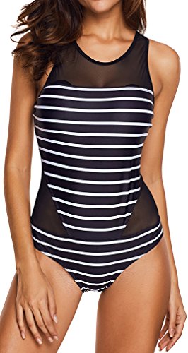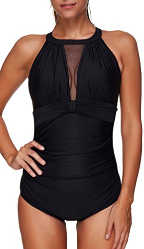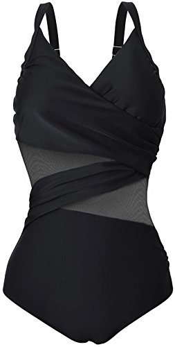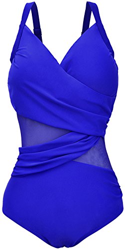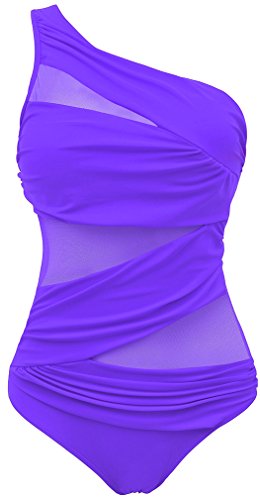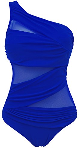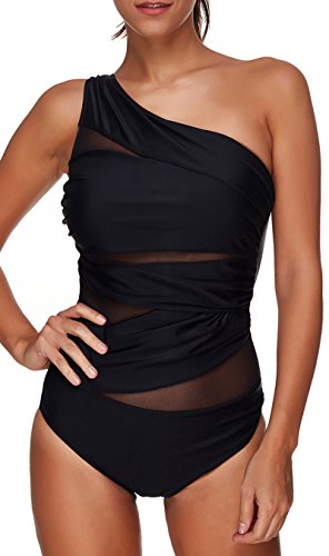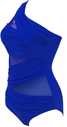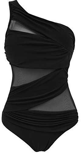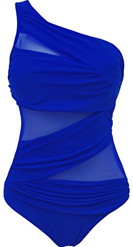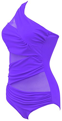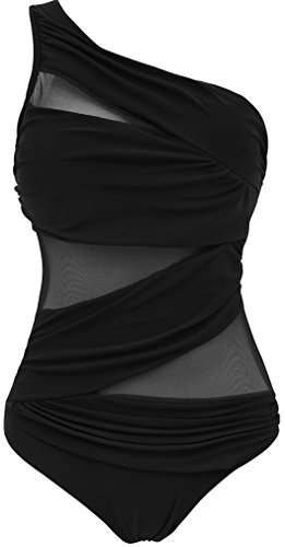 | Pandolah Women's Plus Size Sexy Single Shoulder Mesh Swimsuit One Piece |