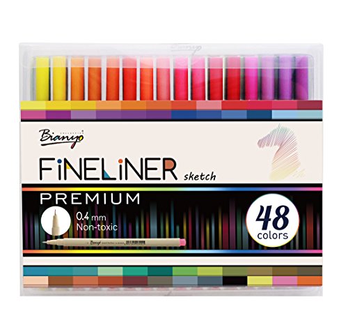 Bianyo Fineliner Micro Pens- Art Colored Markers for Adult Coloring Sketching, 48 Colors