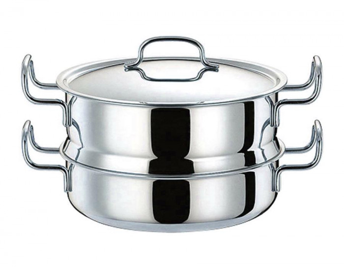 | 全面7層構造は少しの火力・短い時間で調理でき、ガス(電気)代の節約にもなると好評です。ハンドルは使いやすく設計されてるうえに、丈夫なステンレス製なので焦げたり割れたりする心配もありません。点心作りや茶椀蒸し、赤飯などに活躍する蒸し器付です。 |