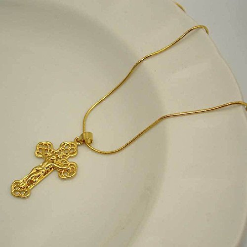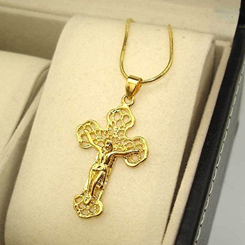 -. Title : CS-DB 18K Gold Real Yellow Gold Filled Necklace Jesus Cross Pendant 18"Chain Link Jewelry Hot