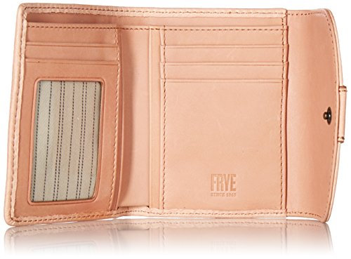 Studio : FRYE Publisher : FRYE Binding : Apparel Product Description Founded in 1863, Frye is committed to creating iconic leather goods, using the best materials, craftsmanship and design. This antique pull up leather snap wallet from our best selling Melissa collection, is the perfect small leather good from Frye. Details: 5 card slots, 3 bill slots, 1 clear ID window. Measurements: 4.75'W X 4'H X .75'D 0