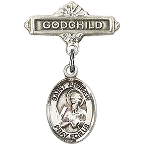 -. Title : Sterling Silver Baby Badge with St. Andrew the Apostle Charm and Godchild Badge Pin 1 X 5/8 inches