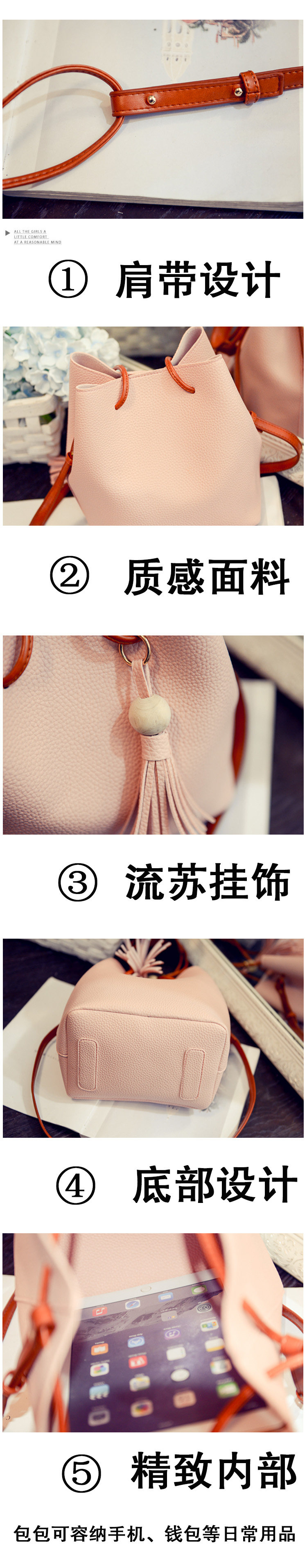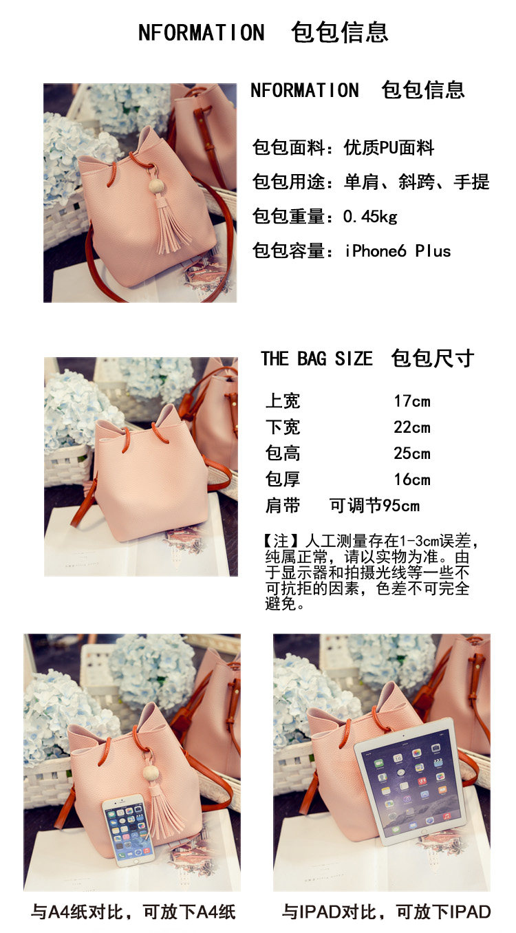 韩版新款女包复古抽带流苏水桶包简约休闲手提大包单肩斜挎包