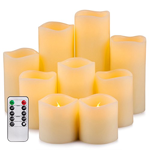 Enpornk Flameless Candles LED Pillar Battery Operated Candles with Remote Timer Ivory Color Set of 9 (D 3" x H 3"/3"/4"/4"/5"/5"/6"/7"/8") YT-00201